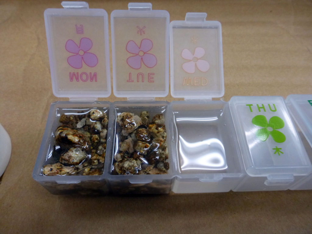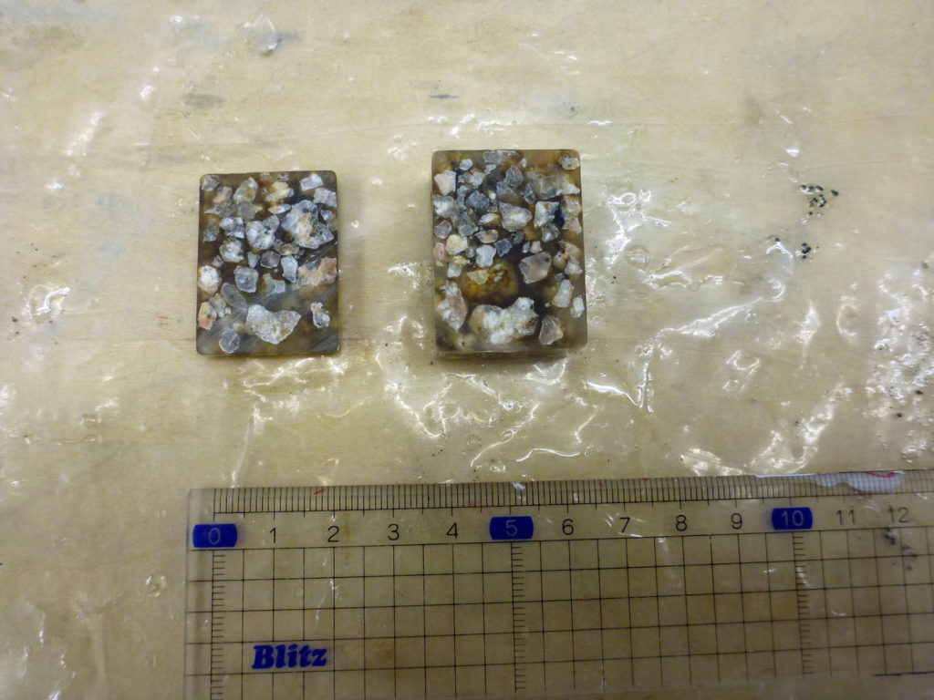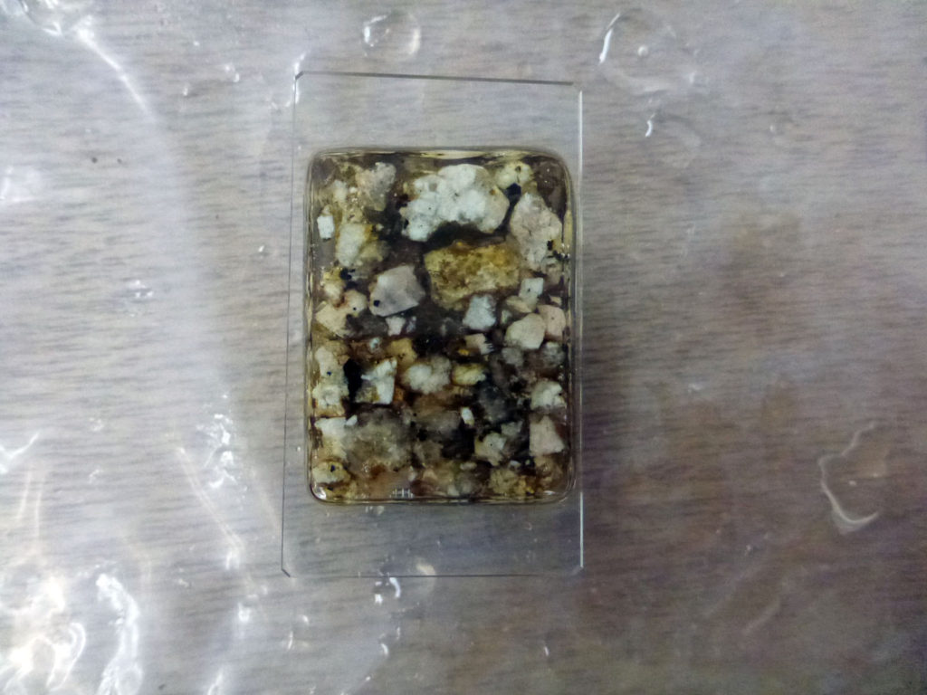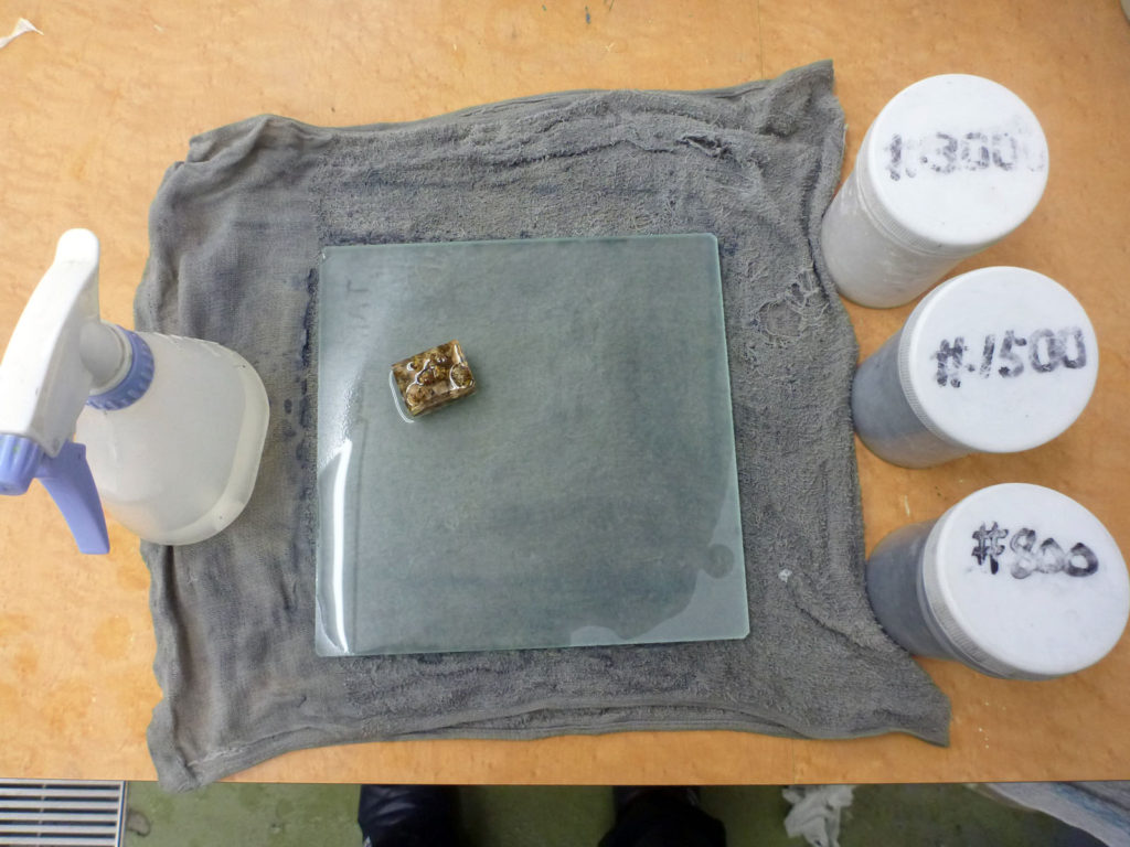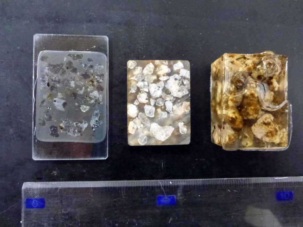多孔質で軟弱な試料、未固結試料など、樹脂固化を行ってから薄片作成を行います。